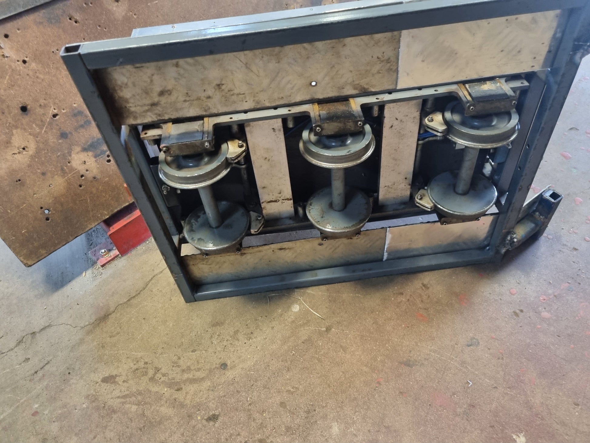 There are some partially fitted air braking system components.