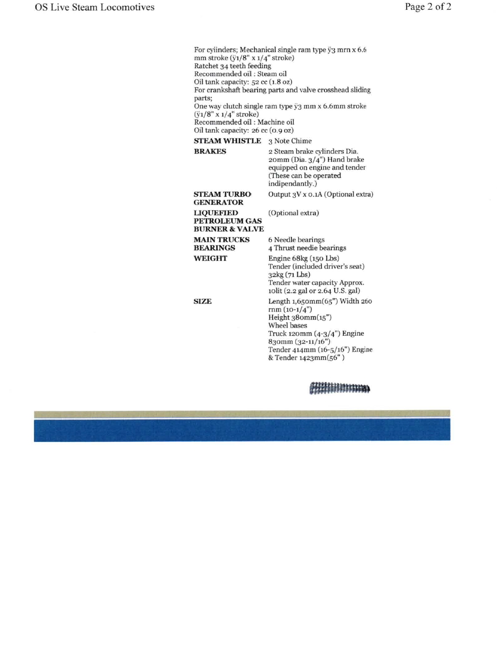 - Full set of manuals from OS Live Steam Locomotives (Japan)