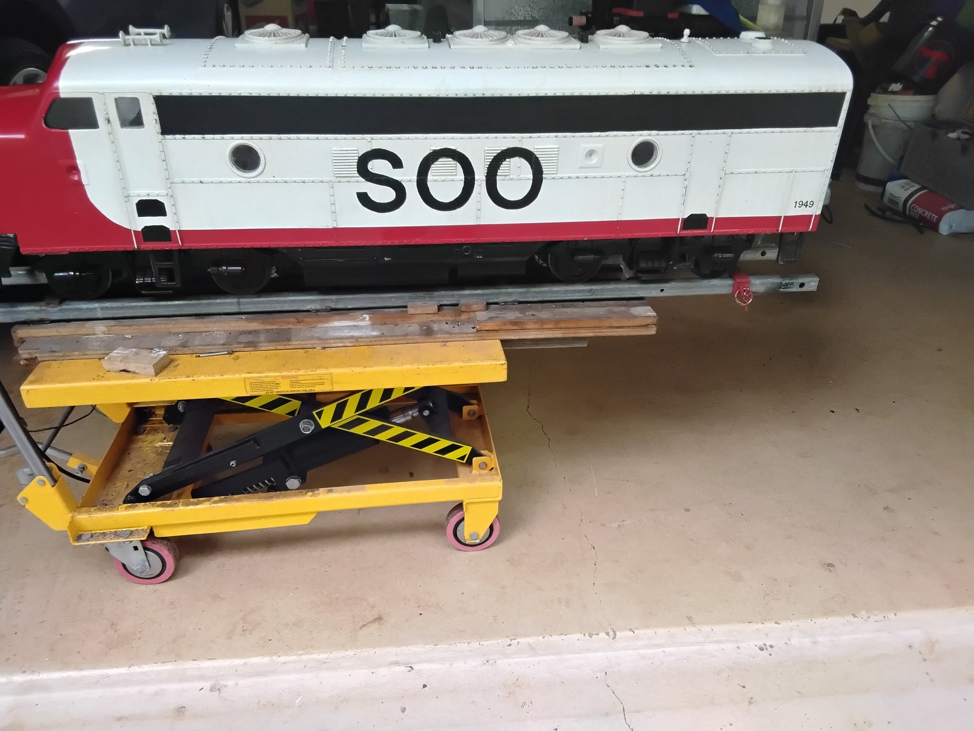 Early model Maxitrak "F7" Locomotive, upgraded from 12 to 24v, painted in the American "SOO Line" Railroad scheme.